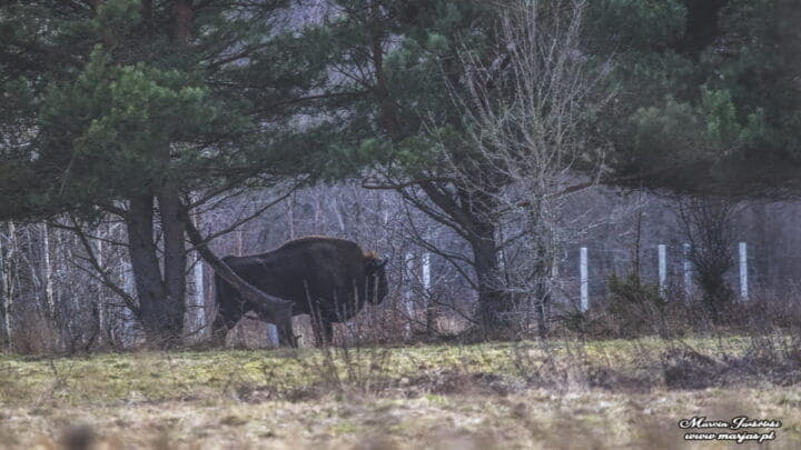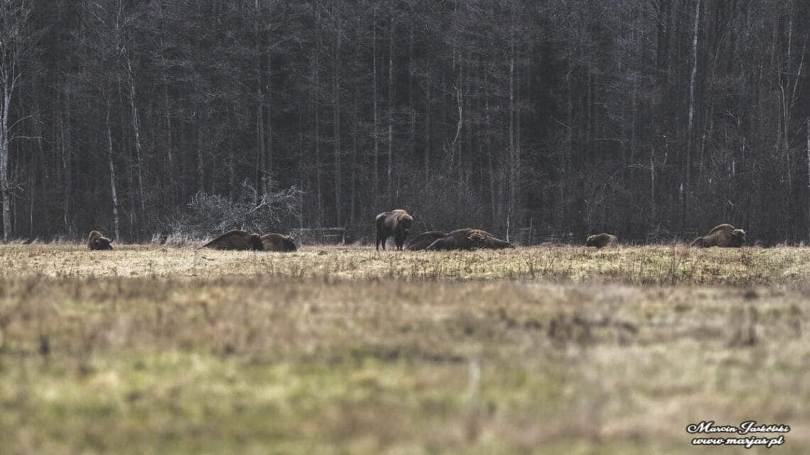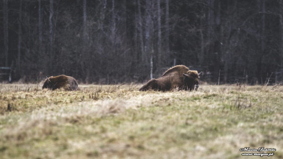 Te żubry na zdjęciu po lewej stronie wypatrzyłem praktycznie przez okno z pięknego drewnianego domku na skraju Białowieży gdzie odwiedzaliśmy rodzinę. Żubry podchodzą bardzo blisko osad ludzi. Niemalże na progu domu widzieliśmy potężne odchody żubra. Dowiedzieliśmy się, że czasami nawet zaglądają przez okno do domu. Tak więc gdzie byście nie jechali to zawsze należy mieć przy sobie aparat fotograficzny. Nigdy nie wiadomo co możecie napotkać na swojej drodze.